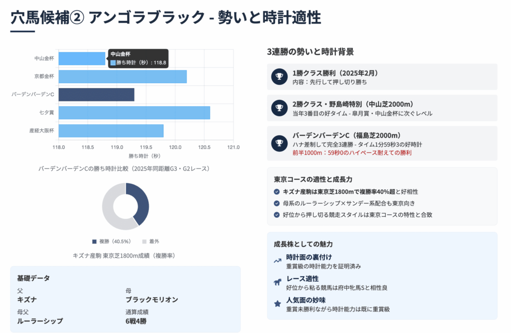 【穴馬候補②】アンゴラブラック | 3連勝の勢いと時計的裏付け