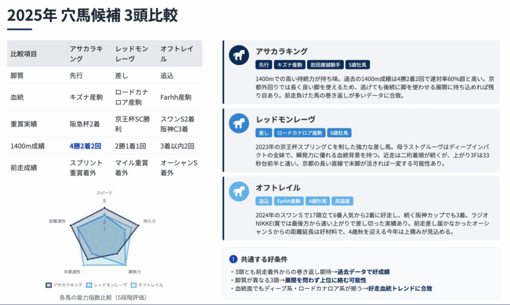 本稿では予想オッズで人気になりにくい3頭を「穴馬候補」として取り上げ、過去のデータや血統、近走内容から深掘りします。そして最後に筆者が最も注目する馬を選びます。