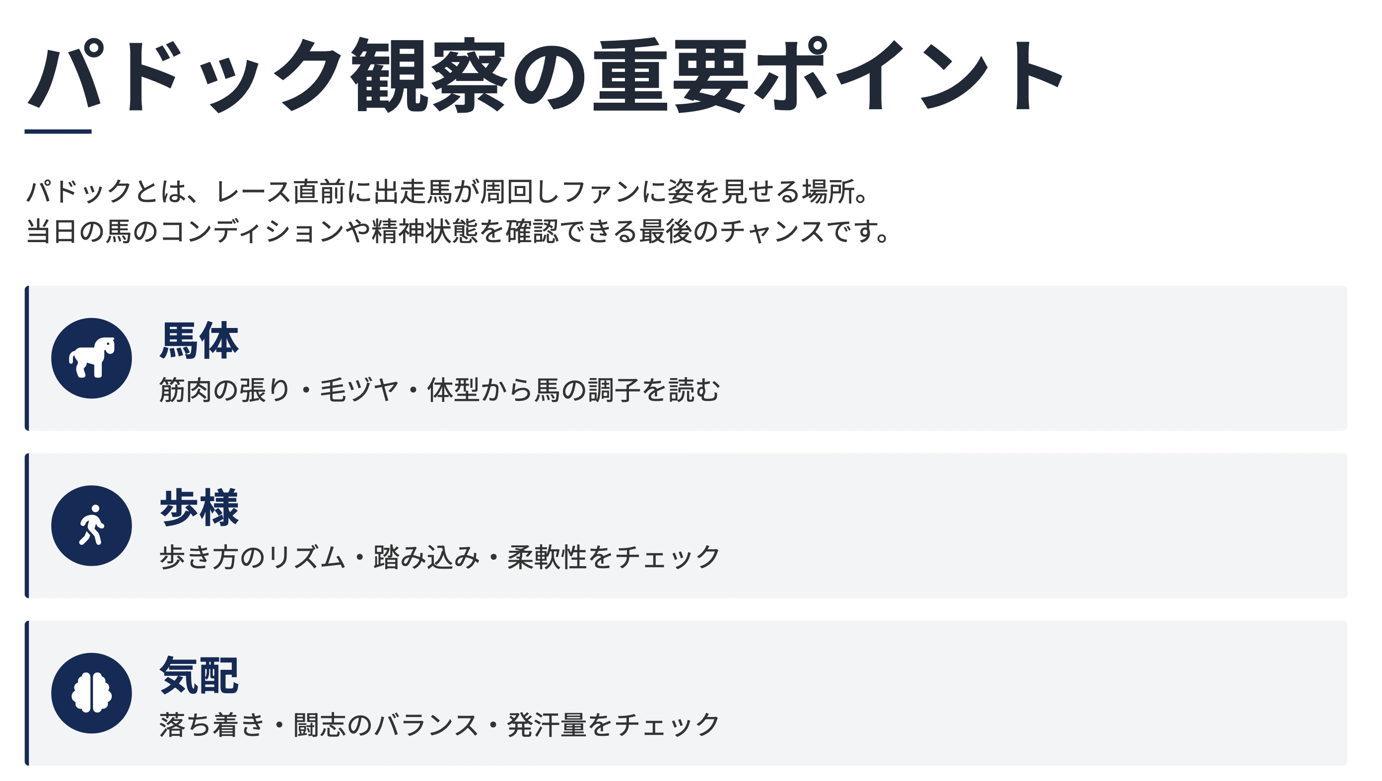 パドック見方を解説!馬体・歩様・気配からレース結果を見抜く方法