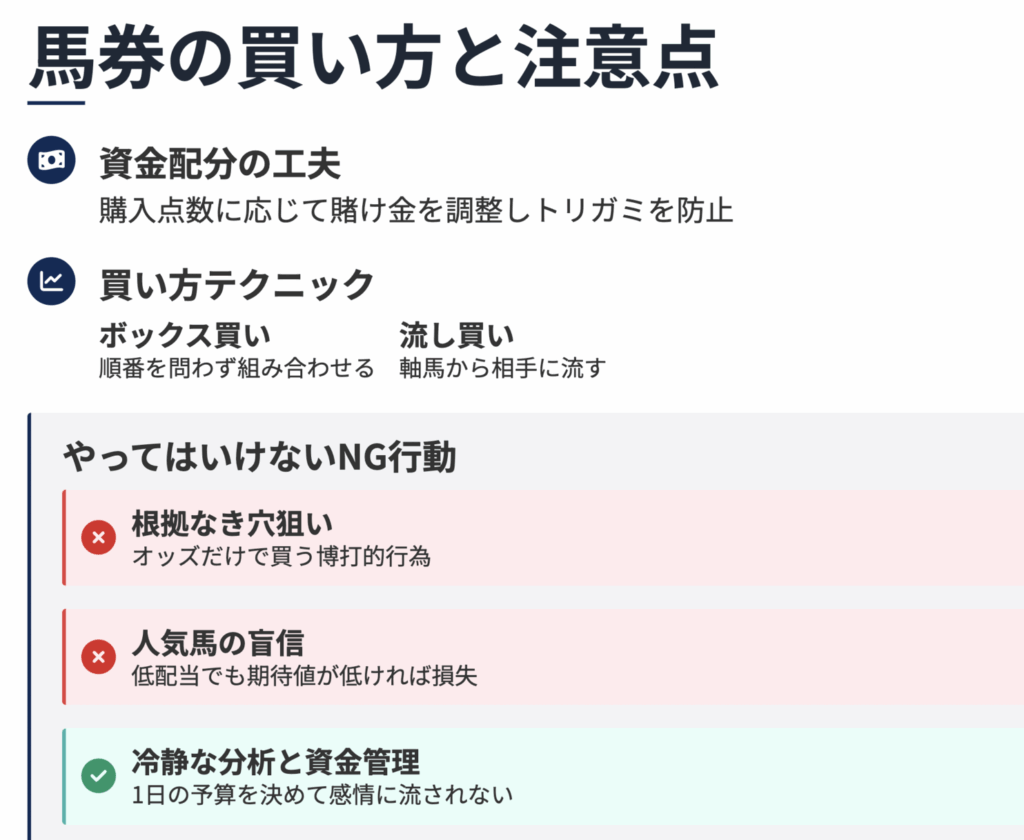ここでは、より実践的な馬券の買い方の工夫について解説します。